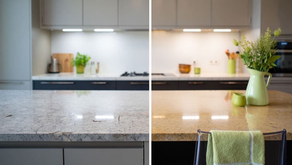 - Cracks and Chips: These not only affect the appearance of your kitchen but can also harbor bacteria, making the surface unsafe for food preparation.